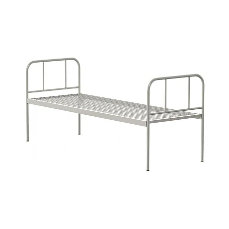 Кровать для размещения больных в палатах медицинских учреждений. Каркас изготовлен из стального профиля, покрытого порошковой краской светлого цвета. Спинки кровати прямоугольные, выполнены из стальных труб. Ложе представляет собой сварную сетку из стальных прутьев. Кровать поставляется только в разобранном виде. Производитель медицинской и лаборантской мебели МедМебель предлагает купить вам такую кровать прямо сейчас. Она продается по выгодной цене и может быть доставлена быстро, в оговоренные при оформлении заказа сроки.