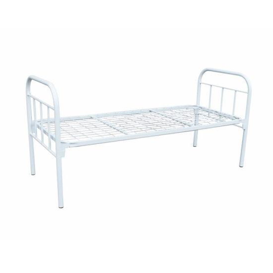 Каркас мебели производится из прочной стальной трубы полуовального сечения. Ложе создается из жесткой сетки, производимой из проволоки. Все детали покрываются защитно-декоративным покрытием, которое устойчиво к механическим воздействиям и частым мойкам с использованием дезинфицирующих средств.