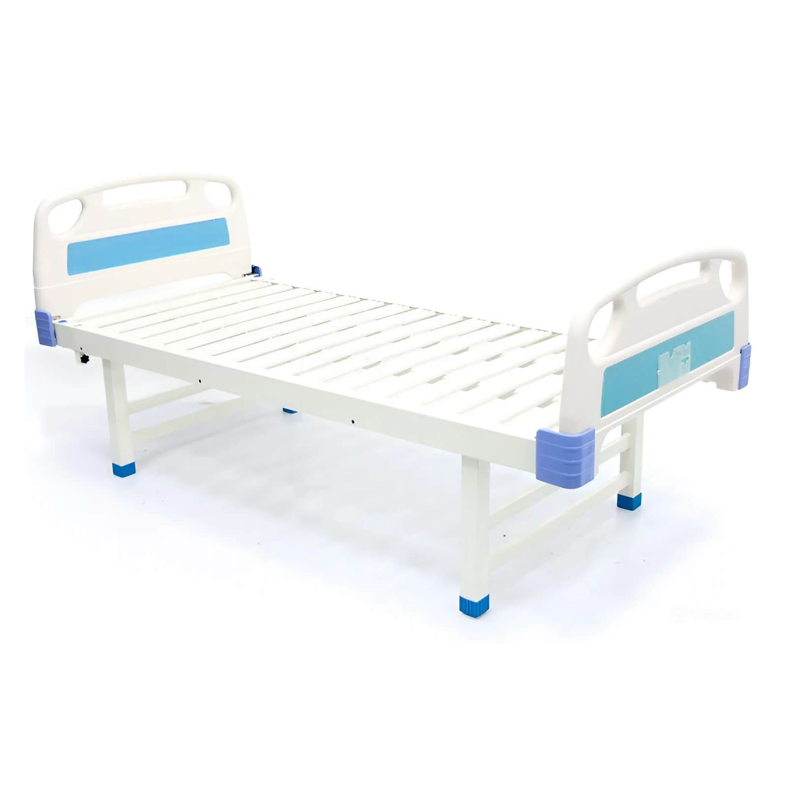 Рама производится из стальных профильных труб, покрытых белой полимерно-порошковой эмалью. Ложе выполнено из металлических реек. Такое исполнение обеспечивает качественную вентиляцию и оптимальное распределение веса пациентов.