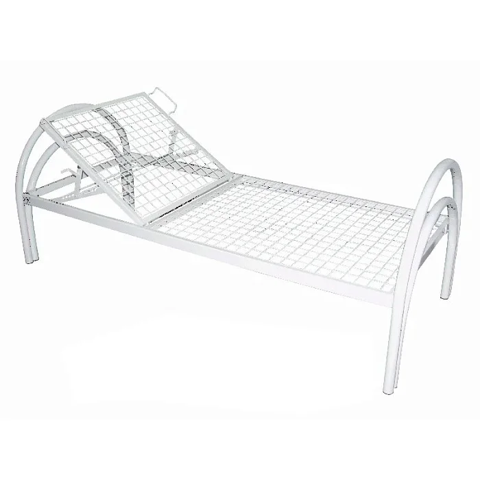 Кровать представляет собой разборную конструкцию, состоящую из каркаса, изготовленного из стального профиля, ложа и двух спинок. Ложе выполнено из цельной сварной сетки. Верхняя его часть поднимается с помощью ступенчатой рейки (гребенки). Спинки кровати полукруглые, изготовлены из стальных труб круглого сечения. Все металлические части кровати покрыты полимерно-порошковой краской.