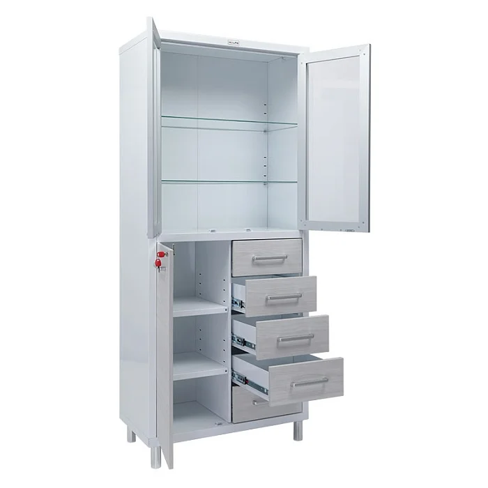 Медицинский шкаф HILFE МД 2 ШМ-SSK предназначен для хранения медикаментов, инструментов, больничных документов, карточек пациентов в медицинских учреждениях и организациях.
