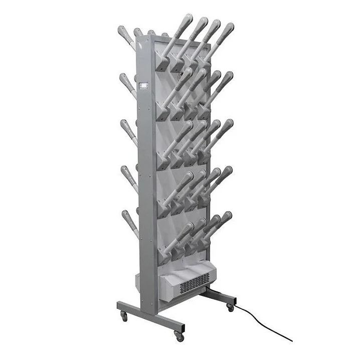 С помощью модуля сушильного Союз-20 (ШСО-20) можно одновременно сушить до 20 пар обуви. Агрегат двухсторонний и каждая панель оснащена 20 штангами для обуви. На приборе устанавливается бактерицидная лампа. Горячий воздух нагнетается электровентилятором. Модуль оснащен небольшими колесиками, с помощью которых он может свободно перемещаться. Лишь в интернет-магазине МедМебель вы можете приобрести модуль сушильный Союз-20 (ШСО-20) по доступной цене. Сделать заказ можно в любое время на сайте. Воспользуйтесь сервисом доставки товаров в пределах Москвы.