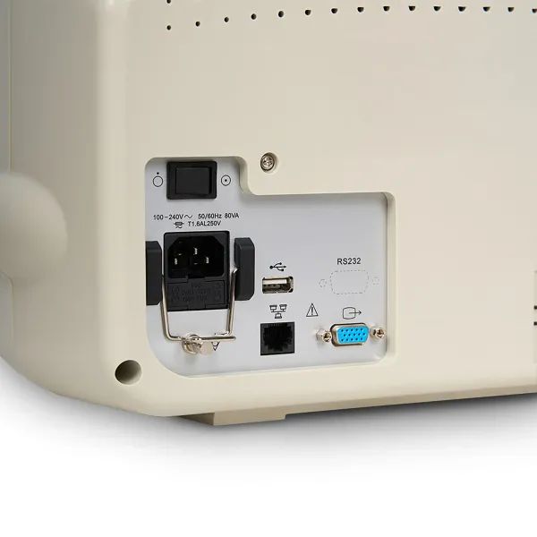 В интенсивной терапии ценится техника, которая не отвлекает. У General Meditech G3F панель управления объединяет индикаторы состояния, функциональные клавиши (в том числе регулировку громкости и яркости), а разъемы для датчиков расположены так, чтобы подключение было быстрым и безопасным. Для навигации предусмотрена ротационная кнопка (джойстик) — удобно, когда работа идет в перчатках и нужно быстро пройти по меню.