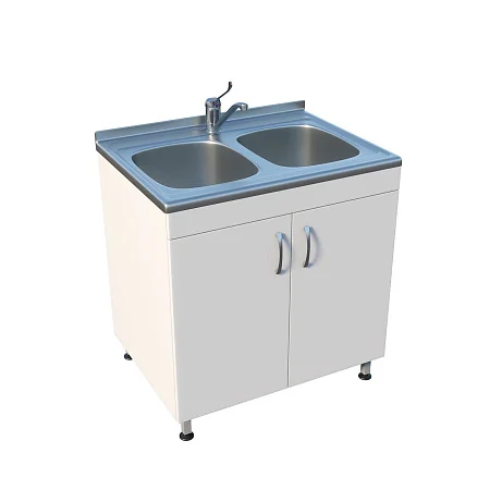 Медицинская мойка ММ 13.005 отлично подходит для оснащения лабораторий и других медицинских учреждений. Модель укомплектована двумя вместительными чашами из нержавеющей стали, надежно закрепленными на тумбе. В комплект входит локтевой хирургический смеситель. Корпус тумбы изготовлен из ЛДСП толщиной 16 мм и оснащен двумя распашными дверцами. Конструкция установлена на ножки с винтовыми опорами, регулируемыми по высоте.