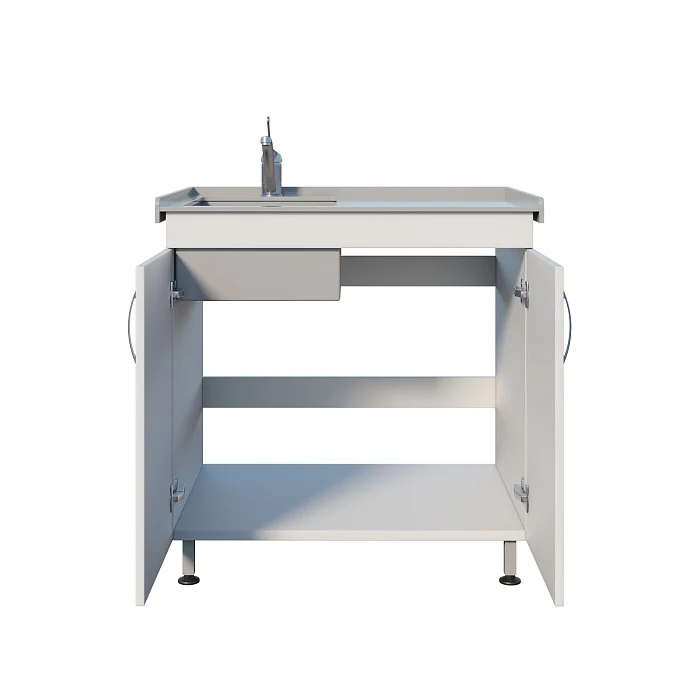 В оснащении поликлиник, стационаров, лабораторий и медицинских центров важны не только размеры и материалы, но и «мелочи», которые ежедневно экономят время и помогают соблюдать санитарные требования. Здесь они учтены: удобное управление смесителем, защитный борт, устойчивая база с регулировкой и закрытая тумба для хранения.
