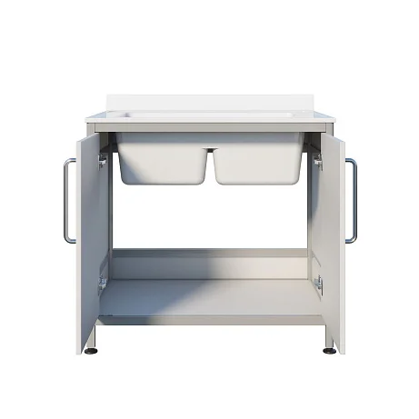 ММ 13.013al — это не «просто раковина», а полноценный модуль для оснащения санитарной зоны: стабильная опора, рабочая поверхность, закрытое хранение в тумбе и удобная двухчашевая схема работы. Мойка помогает поддерживать порядок в помещении, ускоряет типовые процессы мойки и снижает риск ошибок, когда в кабинете одновременно идет несколько задач.