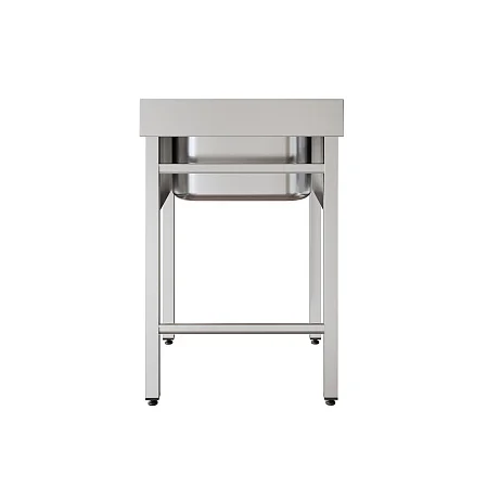Установка на регулируемых по высоте опорах дает возможность компенсировать неровности пола и выставить оборудование ровно — без перекосов и шатания. Для жесткости с тыльной стороны предусмотрены две перемычки: конструкция сохраняет стабильность даже при активной эксплуатации.