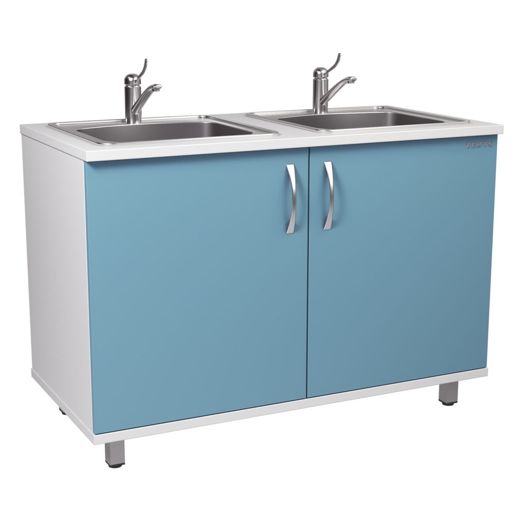 Медицинская мойка ЗММ-02 — практичный модуль для оснащения процедурных, стерилизационных и других рабочих зон, где важны удобство и аккуратная организация пространства. Конструкция с двумя мойками и двумя распашными дверцами помогает комфортно выполнять ежедневные санитарные задачи, а локтевой смеситель уже входит в комплект. Модуль устанавливается на регулируемые металлические опоры, отличается надежной сборкой и продуманными материалами исполнения (корпус ЛДСП, фасады ЛДСП или МДФ). Размер 1200×600×810 мм позволяет удобно встроить мойку в помещение, сохранив функциональность и современный внешний вид.