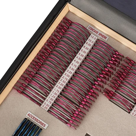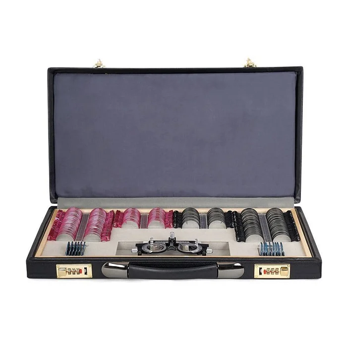 Внутри — не просто линзы «по диоптриям», а полноценный набор для стандартных диагностических проб. Это экономит время: не нужно доукомплектовывать кейс расходниками и искать отдельные элементы по шкафам.