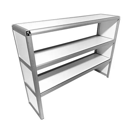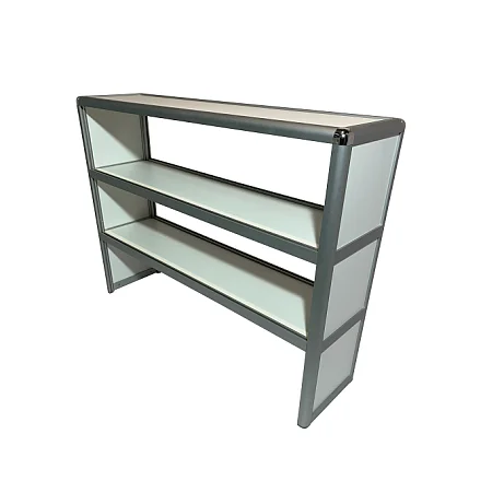 Надстройка MED 15.003al представлена в белом цвете и имеет размеры 1135х300х850 мм, с весом 18 кг, что обеспечивает стабильность и устойчивость. Благодаря трем полкам на этой модели можно разместить все необходимые предметы для работы, сохраняя порядок и эффективность рабочего процесса.
