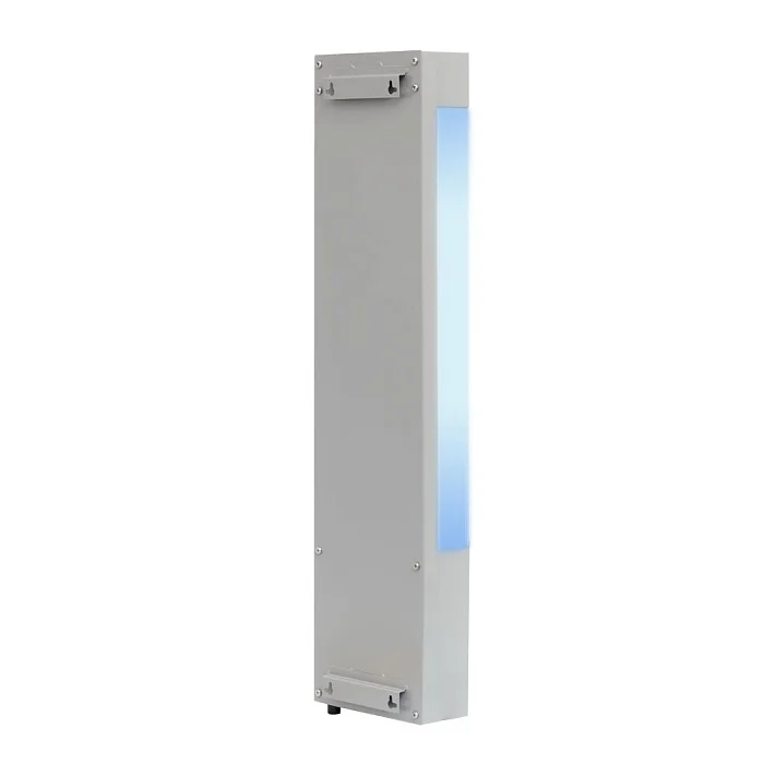 Корпус выполнен из ударопрочного металла со специальным защитным покрытием, устойчивым к регулярной санитарной обработке дезинфицирующими растворами. Закрытый тип рециркулятора с экранированием УФ‑излучения исключает воздействие на персонал и посетителей: воздух проходит внутри камеры через спектр бактерицидных ламп и возвращается в помещение очищенным. Двухламповая компоновка оптимизирует производительность, поддерживая требуемую кратность рециркуляции при невысоком уровне шума и энергопотребления. Внутренние направляющие и вентиляторный модуль обеспечивают равномерное распределение потоков, снижая «мертвые зоны» внутри камеры.