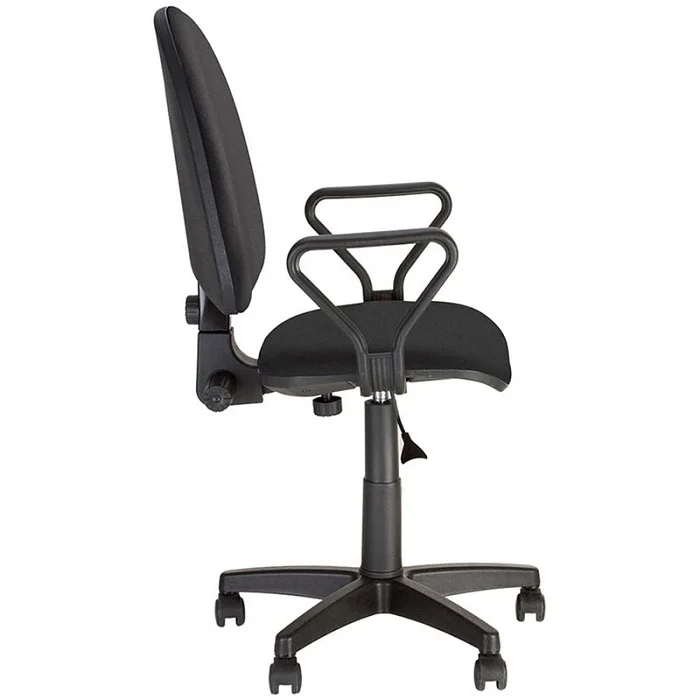 Классическое офисное кресло Престиж черное это модель с мягкими сидением и спинкой. В нем предусмотрены подлокотники для максимального комфорта. Спинка подвижна — принимает форму в зависимости от нагрузки. Ее эргономичная форма обеспечивает удобство сидящего и снижение нагрузки на позвоночник. Высота кресла регулируется, оно установлено на пятилучевую опору на роликах, поэтому легко перемещается.