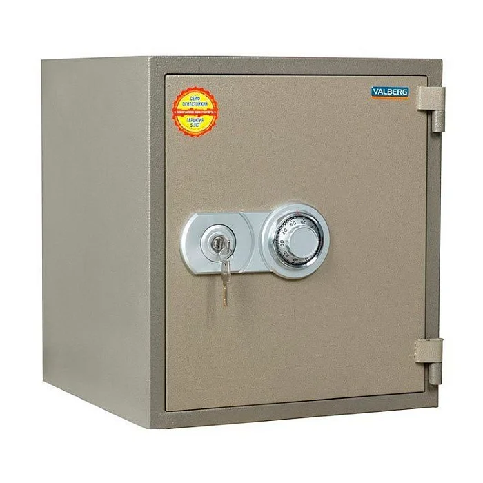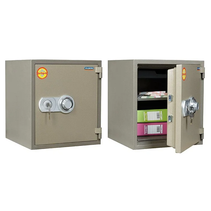 Огнестойкий сейф Valberg FRS-51 CL может быть надежно закреплен на полу анкерами. Для его заливки используется бетонный состав, огнестойкость которого доказана испытаниями. Тепловой замок сейфа усилен благодаря использованию огнестойкого уплотнителя. Запирается дверца сейфа на ключевой и механический замки высокой надежности. В последнем не изменяется кодовая комбинация. Сейф оснащен пластмассовыми ножками.