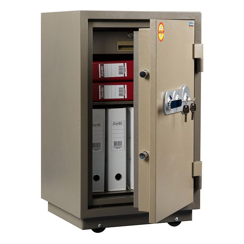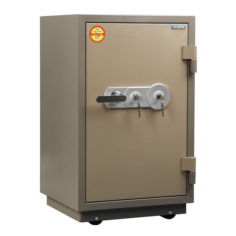 В случае пожара сохранность документов и ценных вещей сможет обеспечить огнестойкий сейф Valberg FRS-80.T-KL. В его конструкции предусмотрены отверстия для анкеров, чтобы сейф можно было закрепить на полу. Также его можно оставить незафиксированным и с легкостью перемещать по помещению на колесах. На дверце сейфа установлено два ключевых замка. Тепловой замок конструкции усилен использованием огнестойкого уплотнителя. Заливка корпуса и дверцы выполнена с применением огнестойкого бетонного состава.