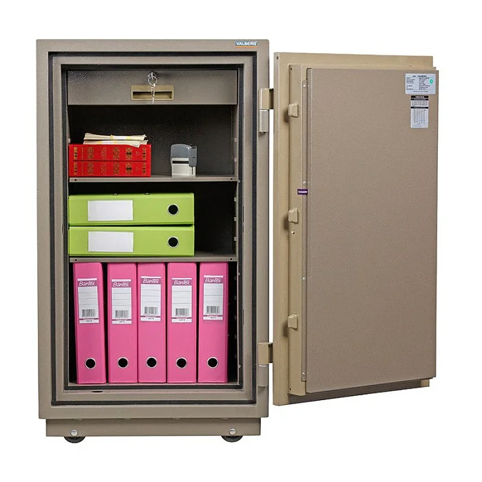 Сохранность документов и любых ценностей в случае пожара обеспечит огнестойкий сейф Valberg FRS-99.T-EL. Он комплектуется ключевым замком и электронным кодовым, в котором можно изменять комбинацию. Сейф можно закрепить на полу анкерами или оставить возможность с легкостью перемещать его по помещению благодаря колесам в конструкции. Усиление теплового замка сейфа достигается за счет использования огнестойкого уплотнителя. При заливке элементов конструкции используется бетонный состав с высокой степенью огнестойкости.