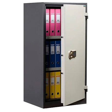 Огнестойкий и взломостойкий шкаф VALBERG BM-1260EL (кодовый электронный замок PS 310/E01) предназначен для хранения документов, кроме того, производитель позаботился об их сохранности в случае пожара. Двойные стены и дверь содержат внутри теплоизоляционный материал. Регулируемые полки, кодовый электронный замок PS 310/E01 и трехсторонняя ригельная система запирания. Двери могут открываться на 180 градусов. Конструкция шкафа цельная, поставляется только в собранном виде.