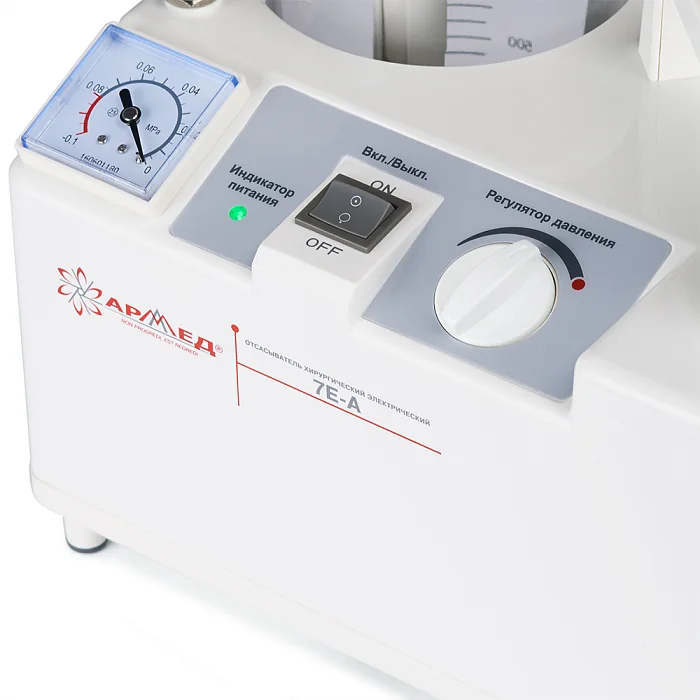 Отсасыватель хирургический электрический «Armed» 7Е-А служит для отсасывания жидкостей, газов и тканей из ран во время или после операций путем создания отрицательного давления. Также аппарат может применяться в других случаях, требующих отсасывания жидкостей из полостей. Небольшие размеры делают аппарат мобильным, для переноски предусмотрена ручка. Банка-сборник оснащается клапаном, который препятствует переливу собираемой жидкости. Купите отсасыватель хирургический электрический «Armed» 7Е-А в магазине МедМебель по самой доступной цене в Москве. Для этого Вам необходимо заполнить форму заказа на сайте. Доступна услуга адресной доставки.