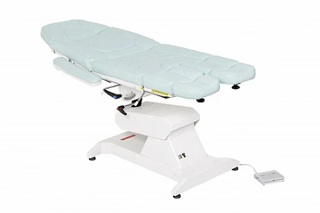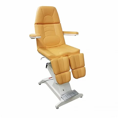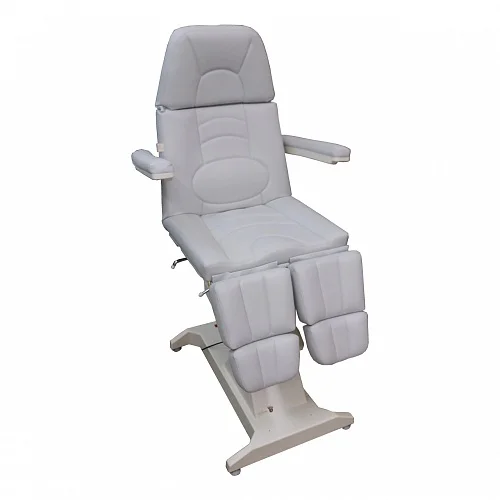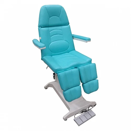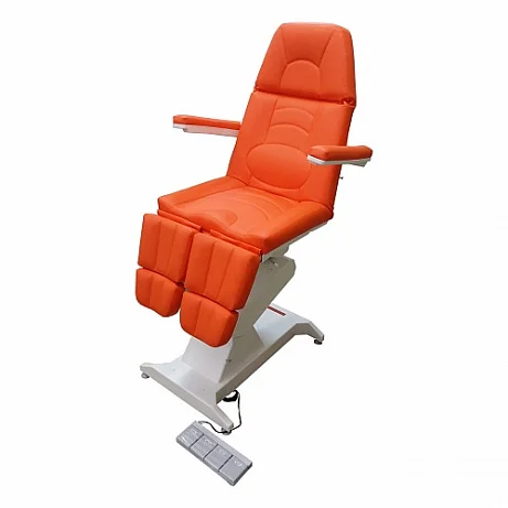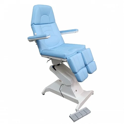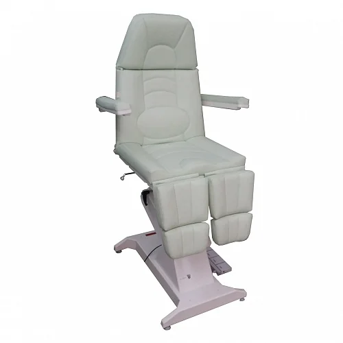 Кресло процедурное ФП-1 ("ФутПрофи-1"), 1 электропривод. Кресло оснащено одним электроприводом итальянского производства (Ciar S.p.A.), регулирующими высоту кресла. Спинка кресла регулируется при помощи газлифта немецкого производства (Stabilus GmbH). Обивка кресла выполнена из высококачественной экокожи, изготовленной в Германии (Konrad Hornschuch AG) – устойчивый к дезинфицирующим растворам износостойкий «дышащий» материал с широкой цветовой гаммой. Железная конструкция кресла скрывается качественным пластиком, не трескающимся и не меняющим цвет с течением времени (в структуре пластика специальные добавки, защищающие материал от ультрафиолетового излучения). Кресло дополнительно может быть оснащено газлифтами на подножках немецкого производства (Stabilus GmbH). Поднимание подножки происходит путем нажатия на рычаг. Регистрационное удостоверение Росздравнадзора РФ № РЗН 2019/8260 от 03.04.2019. Приказ от 03.04.2019 № 2539.