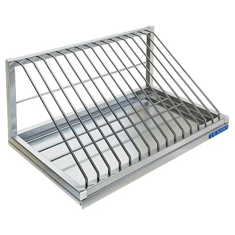 Практичная и аккуратная: сварная полка из нержавеющей стали AISI 304 на 15 секций — место для 15 крышек или разделочных досок. Конструкция сочетает листовой металл и пруток Ø6 мм. Есть отверстие с вырезом «замочная скважина» для быстрой навески на стену. Поставляется в собранном виде — вешаете и пользуетесь.