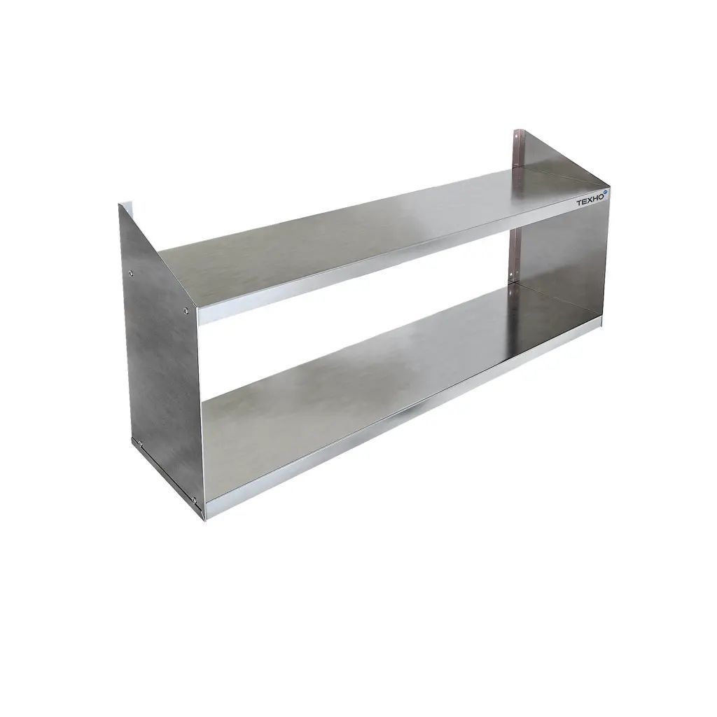 Прочная и практичная двухъярусная полка из нержавеющей стали AISI 304 (0,8 мм). Конструкция разборная с болтовыми соединениями — удобно перевозить и собирать на месте. Крепится к стене с помощью двух боковых кронштейнов; кронштейн можно установить как сверху, так и снизу полки. Допускается вертикальная сборка нескольких модулей друг над другом. Рекомендуется монтировать на влагостойкие поверхности.