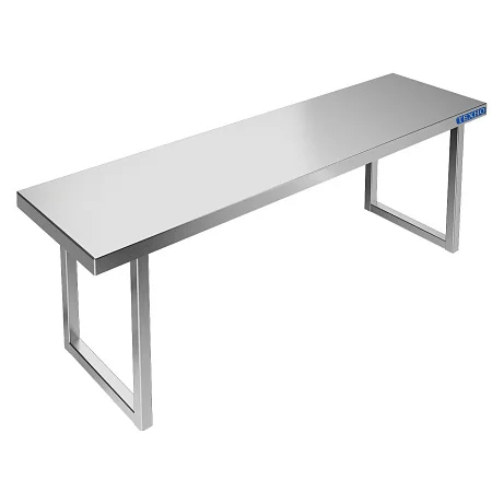 Простая и надёжная полка для тех, кто ценит порядок на кухне. Сделана из нержавеющей стали AISI 304: сам лист полки 0,8 мм с усилителем, стойки — труба 20×20 мм, 1,2 мм. Один ярус — ровно столько, чтобы не загромождать стол, но держать под рукой посуду, соусы и мелкий инвентарь.