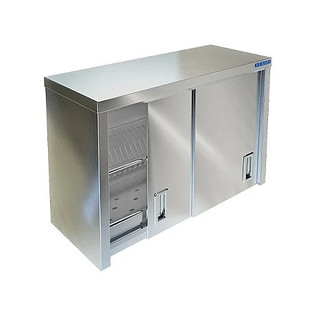 Простой и надёжный настенный шкаф-полка для кухни: вешается над моечной зоной или рабочим столом и сразу готов к работе — поставляется в собранном виде. Корпус и съёмная кассета под тарелки, а также поддон выполнены из нержавеющей стали AISI 304 толщиной 0,8 мм, что делает полку долговечной и лёгкой в уходе. Внутри умещается до 35 тарелок и 50 стаканов. Задняя стенка из AISI 430 (0,8 мм) обеспечивает жёсткость конструкции, а накладки с вырезом «замочная скважина» упрощают монтаж на стену.
