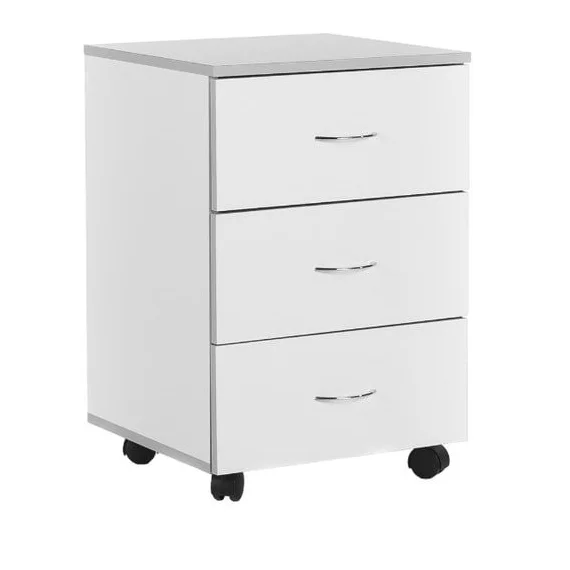 Прикроватная тумбочка из ЛДСП белого цвета устанавливается на четыре колесных опоры. Представляет собой модель с тремя выдвижными ящиками на телескопических направляющих, позволяющих полностью выдвинуть ящик и закрыть его при полной загрузке. Ящики достаточно вместительные, тумбочка отлично подойдет для личных вещей. Купить эту модель в магазине МедМебель, Москва, можно в любое удобное для вас время. Достаточно позвонить по указанным на сайте телефонам и оговорить с сотрудниками все детали заказа.