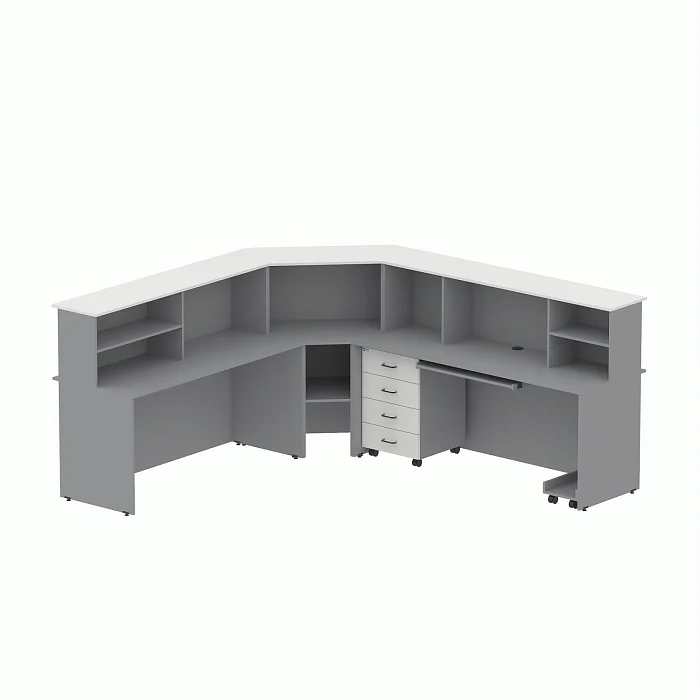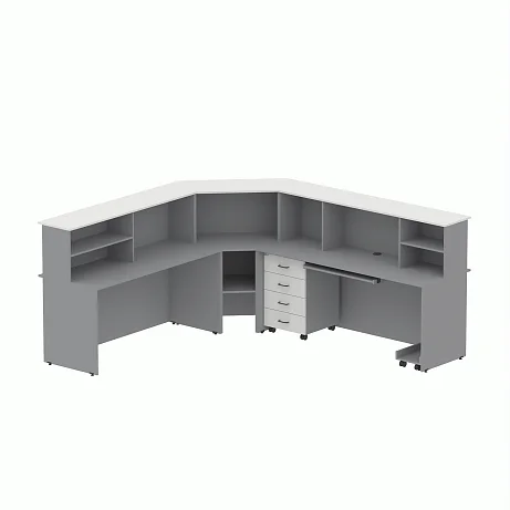 Ресепшн GRAY LITE 2. Производство Горское, Россия. Стандартная комплектация: ресепшн в разобранном виде, комплект фурнитуры, паспорт со схемой сборки.