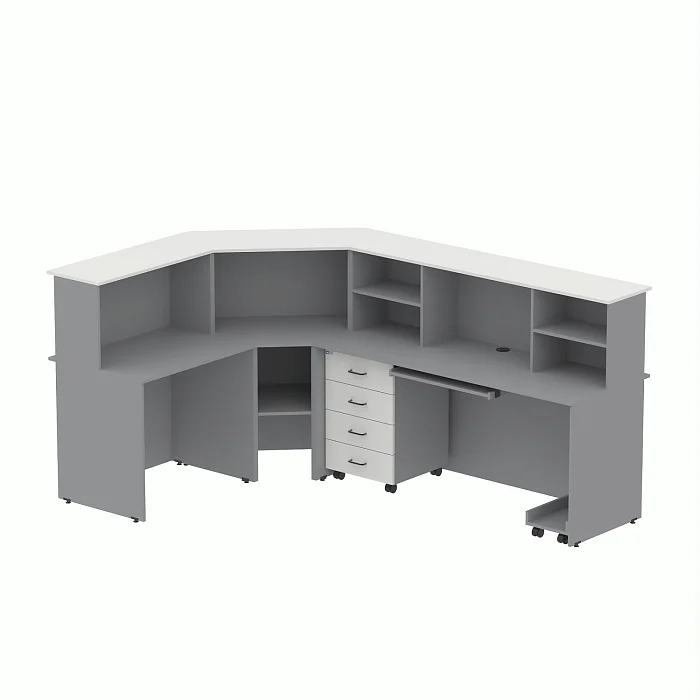 Ресепшн GRAY LITE 4. Производство Горское, Россия. Стандартная комплектация: ресепшн в разобранном виде, комплект фурнитуры, паспорт со схемой сборки.
