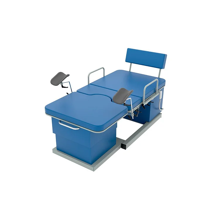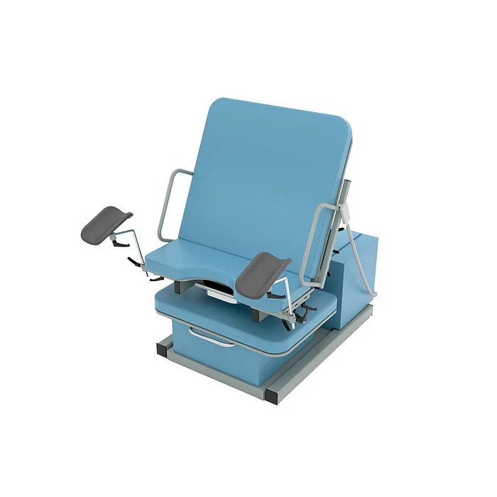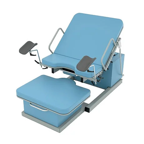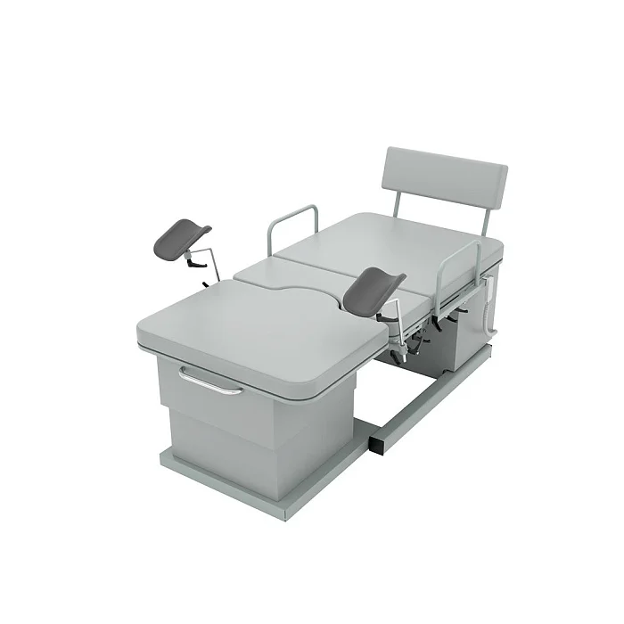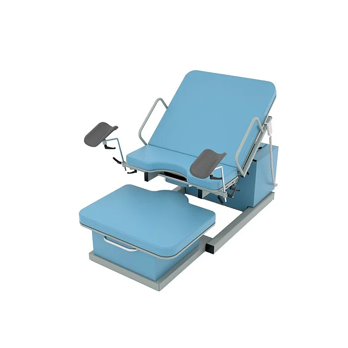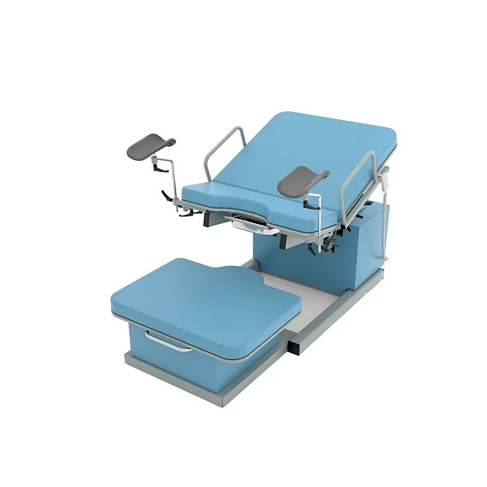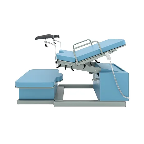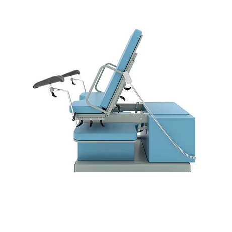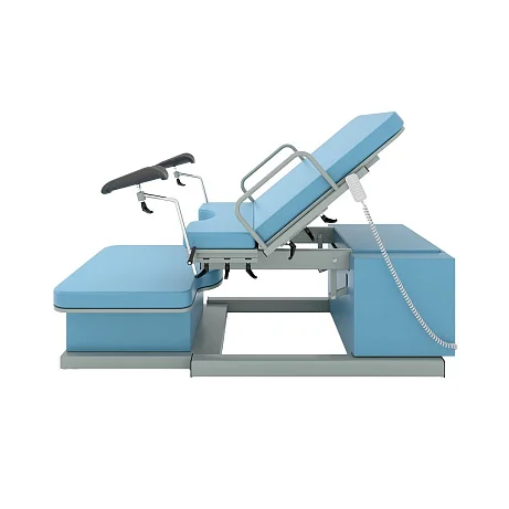Модель оснащена четырьмя электроприводами, которые позволяют изменять высоту базового основания и ножной секции, регулировать наклон спинной секции и верхней части базового основания. Все регулировки выполняются с помощью пульта дистанционного управления, что делает эксплуатацию максимально удобной и точной. Медицинский персонал получает возможность оперативно подстраивать положение пациентки под клиническую ситуацию, не отвлекаясь на сложные ручные механизмы.