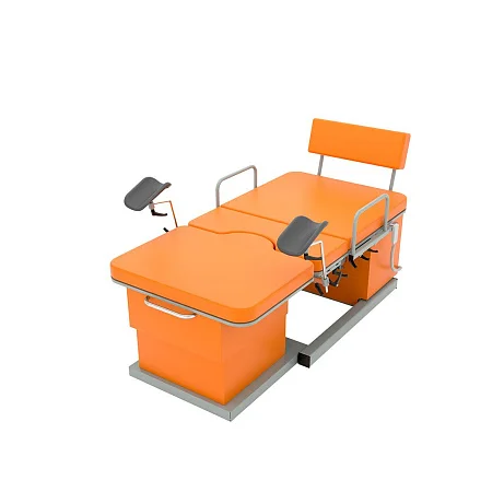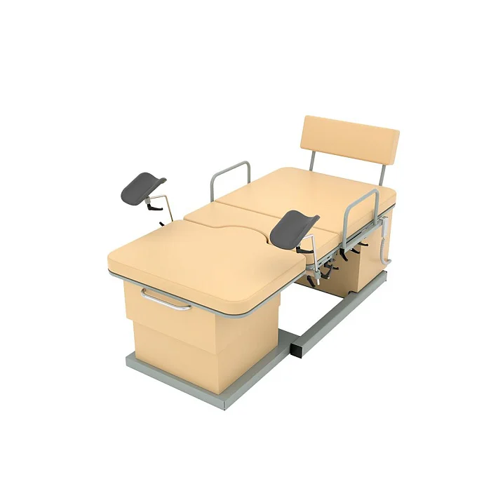 Базовое основание и ножная секция установлены на колеса, что облегчает перемещение оборудования внутри помещения. Колеса ножной секции и задние колеса базового основания оснащены тормозом для надежной фиксации. Такое решение повышает безопасность при проведении осмотров, манипуляций и родовспоможения, когда стабильность положения оборудования особенно важна.