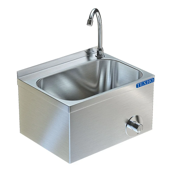 Идеален для цехов, кухонь и санитарных зон, где важны гигиена, прочность и простота обслуживания. Управление подачей воды — коленным приводом, что сокращает контакт руками и повышает санитарные стандарты.