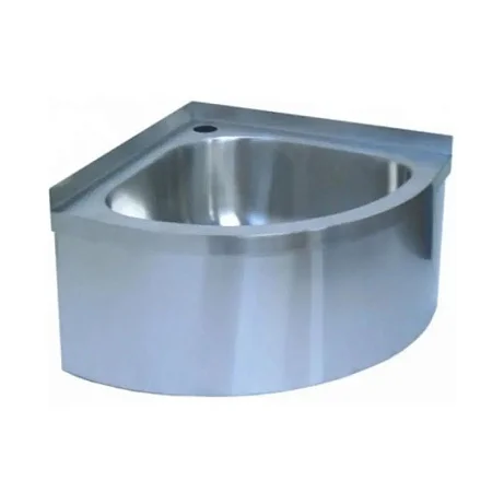 Удобный и надёжный угловой рукомойник — емкость цельнотянутая 360×360×200 мм из нержавеющей стали AISI 304 (1,0 мм), корпус — AISI 430 (0,8 мм). Имеет пристенный бортик 25 мм и крепится к стене шурупами. Поставляется в разобранном виде, что делает доставку проще и безопасней.