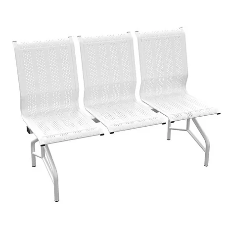 Секция стульев С4.38.01 - это практичное и долговечное решение для оформления административных помещений. Сварная конструкция из стали с белым порошковым покрытием гарантирует надежность и приятный внешний вид. Сиденья из перфорированной стали обеспечивают комфорт. Секция установлена на устойчивые фигурные опоры, дополнительно усиленные внутренним рисунком.