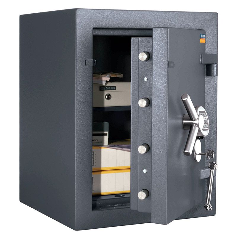 Двери и стенки сейфа 5 класса VALBERG АЛМАЗ 67 EL имеют многослойную структуру и армированы бетоном. Ригельная система защищена каленым стеклом. Ригели и замки устойчивы к выбиванию и высверливанию. Для установки сигнализации на задней стенке предусмотрено отверстие. При попытке выбивания замка автоматически срабатывает блокировка ригельных механизмов. На двери устанавливаются ключевой замок и кодовый электронный замок PS-600. Двери оснащаются счетчиком открывания DLC-100. К полу изделие крепится с помощью анкерного болта. Сделайте прямо сейчас заказ на поставку сейфа 5 класса VALBERG АЛМАЗ 67 EL в интернет-магазине МедМебель. У нас всегда предлагаются самые низкие цены на все виды товаров. Доставкой по Москве занимается курьерская служба.