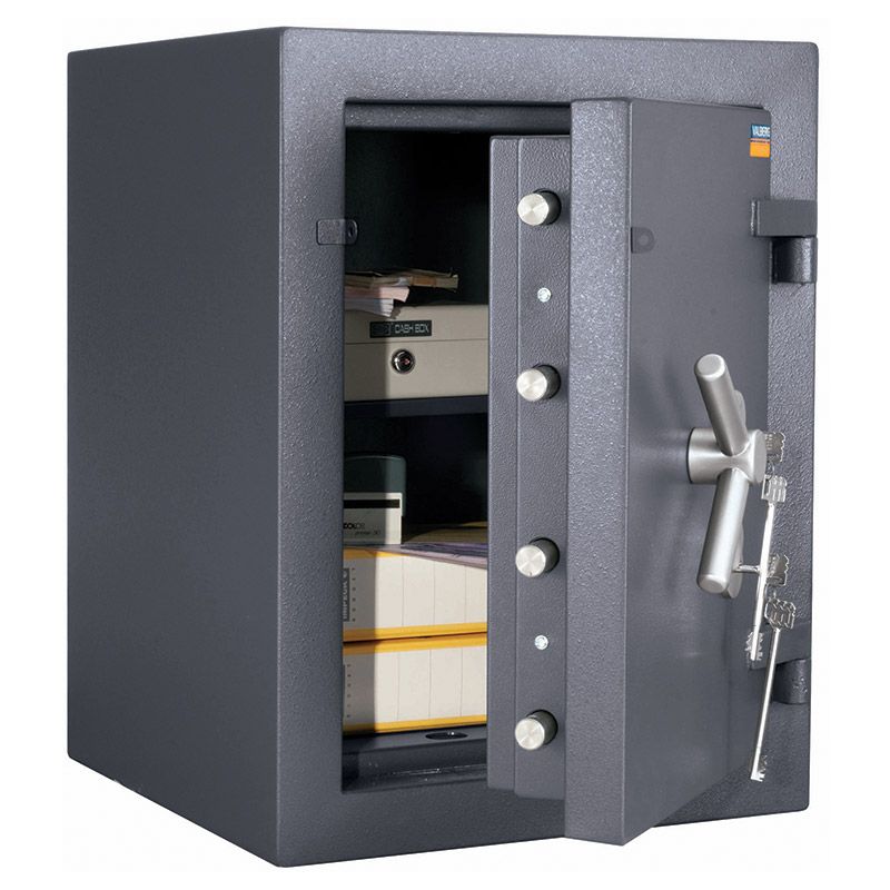 Двери и стенки сейфа 5 класса VALBERG АЛМАЗ 67 KL армируются бетоном и имеют многослойную защиту из композитных материалов. Замки и ригели устойчивы к высверливаниям и выбиваниям. В задней стенке предусмотрено отверстие для установки сигнализации. На внутренней части двери устанавливается счетчик открывания DLC-100. С помощью анкерного крепления сейф фиксируется к полу. На дверях устанавливаются два ключевых замка KABA MAUER. Купите с выгодой сейф 5 класса VALBERG АЛМАЗ 67 KL в интернет-магазине МедМебель. Заполнение формы заказа на сайте займет считанные минуты. По всей Москве товары развозит служба доставки.