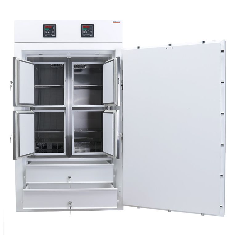 Две независимые камеры из нержавеющей стали 54х2 – термостат Габариты: 2x(723x263x289) Cейф-термостат TS-3/100 комплектуется:
