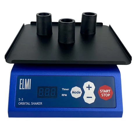 ELMI S-3 разработан для перемешивания образцов без лишней «акробатики» со стороны персонала. Орбитальное движение платформы помогает добиться равномерного перемешивания, а не просто «болтанки», что критично при подготовке проб, растворении реагентов и работе с сериями образцов.