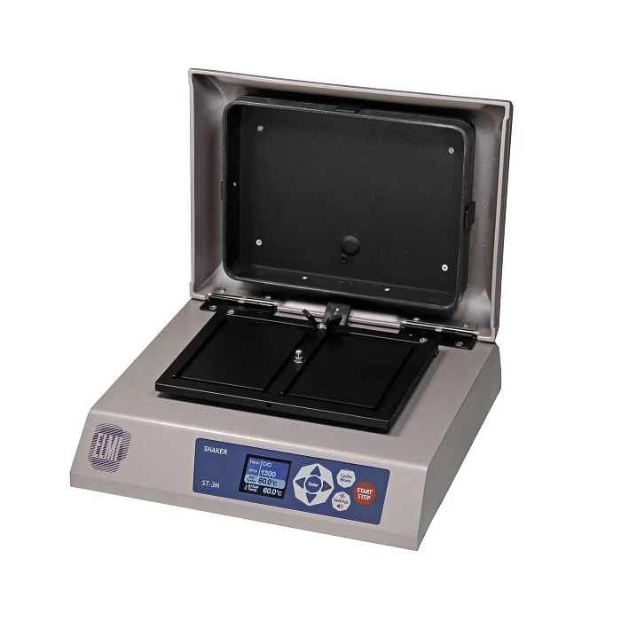 Модель активно применяется в медицинской диагностике in vitro: когда результат зависит от точности параметров, ST-3M берёт на себя рутинные задачи и делает их предсказуемо. Конструкция продумана для практичной ежедневной работы — на платформе можно разместить сразу два планшета, что ускоряет обработку серий проб.