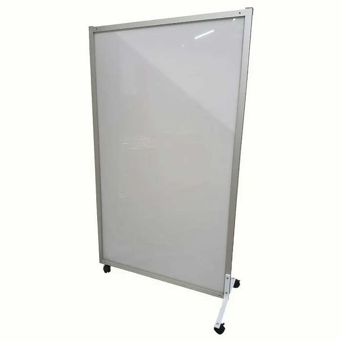 Сдвоенные колеса обеспечивают устойчивое положение и плавное перемещение по напольному покрытию. При своих габаритах 1050х270х1800 мм модель остается достаточно компактной, чтобы не мешать движению персонала и пациентов, но при этом эффективно выполняет основную функцию визуального разделения пространства.