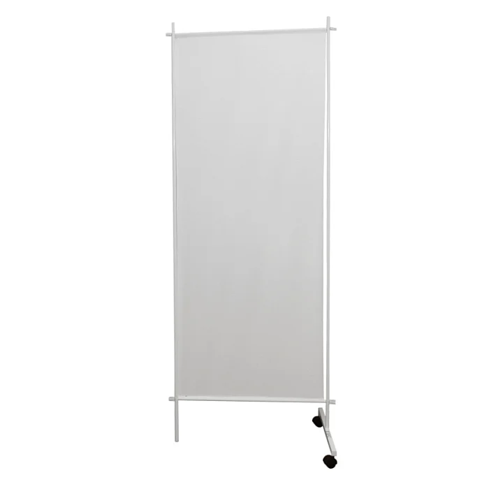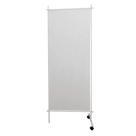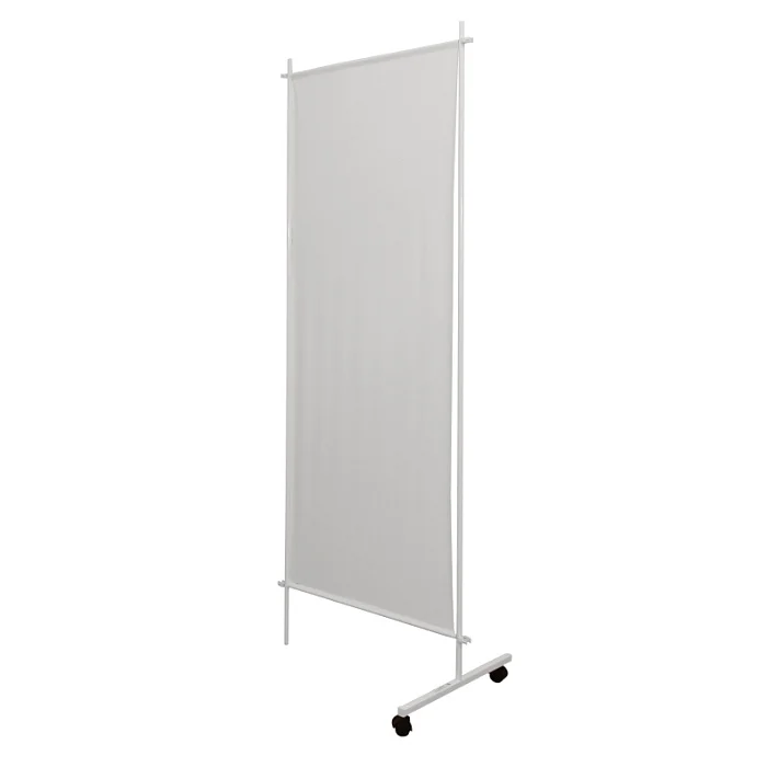 ДЗМО ШП-1/3 представляет собой односекционную ширму. Изделие предназначено для временного отгораживания части помещения для осуществления врачебного осмотра. Для производства каркаса используется стальная круглая в сечении труба, покрытая эпоксидной порошковой краской. Полотнище произведено из ПВХ пленки и легко переносит обработку. Конструкция установлена на одну опору и стойку с мебельными колесами.