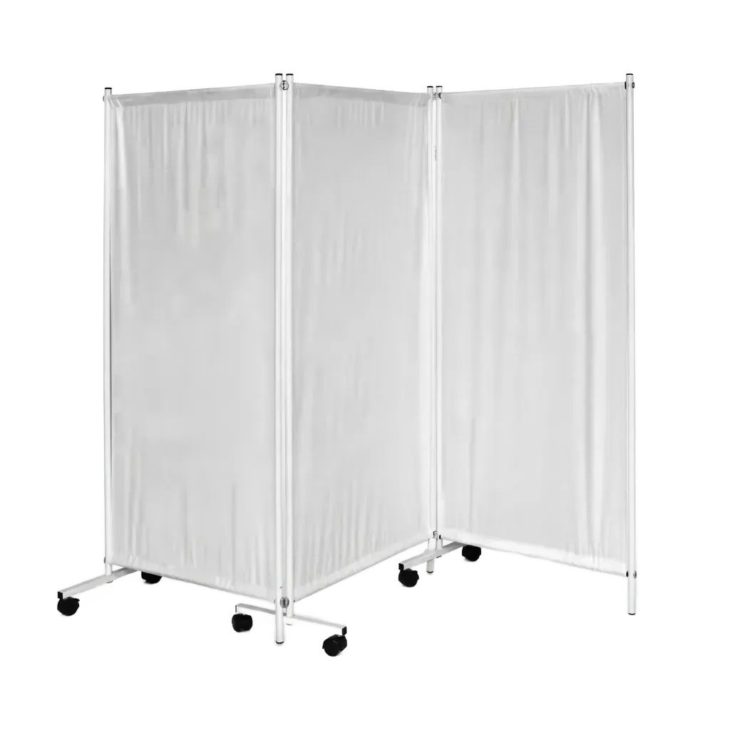 Модель рассчитана на повседневную нагрузку в медицинских учреждениях и уместна там, где важно быстро организовать пространство: в смотровых, диагностических, процедурных и терапевтических кабинетах, а также в палатах, включая реанимационные. Наличие колес облегчает перемещение ширмы между зонами и позволяет оперативно менять планировку без лишней суеты.