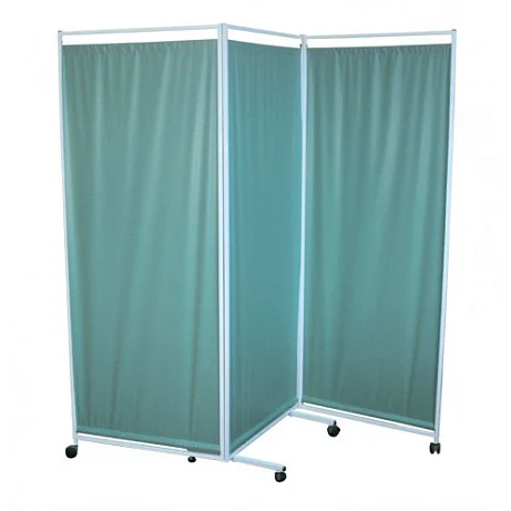 Ширма Трехсекционная ШРМ-3 — вспомогательная медицинская мебель. Конструкция разработана для создания временного ограждения, раздевалки, зонирования пространства кабинета. Модель состоит из трех рам на шарнирах, выполненных из труб квадратного сечения. Крайние рамы стоят на регулируемых опорах, а средняя на четырех колесах. Полотна выполнены из медицинской клеенки и закрепляются в рамах на липах. Все металлические поверхности модели имеют полимерно-порошковое покрытие. Конструкция полностью разборная (соединительные планки, болты, гайки и крепежи поставляются в комплекте).