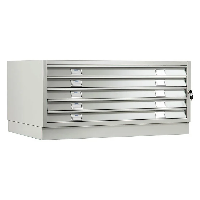 Шкаф для чертежей Практик А0-05/3 может служить нижней секции модуля. Пять выдвижных ящиков используются для хранения документации, размер которой не превышает формата А0. В ящиках предусмотрены прижимная планка и два разделителя, которые позволяют размещать в них документы меньших форматов. Ящики оборудованы центральным ключевым замком. Интернет-магазин МедМебель установил самую минимальную цену на шкаф для чертежей Практик А0-05/3. Для того, чтобы приобрести шкаф, вам достаточно заполнить на сайте форму заказа. В пределах Москвы товары доставляются курьерской службой.