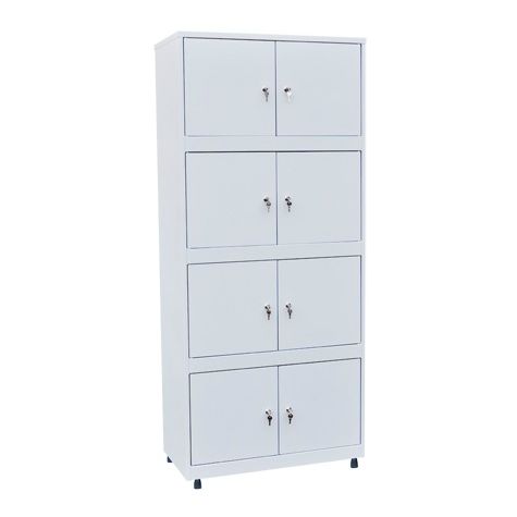 Удобное и гигиеничное хранение постельного белья в больнице обеспечит шкаф для индивидуальных простыней. Его конструкция предусматривает восемь отделений, которые запираются на ключевые замки. Внутри каждого отделения установлено по две стационарные полочки для разделения пространства на удобные секции. Шкаф вместительный и при этом не занимает много места. Он полностью отвечает нормативам, принятым для медицинской мебели.