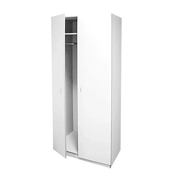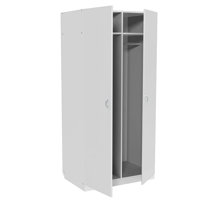 Шкаф для одежды МД-501.01 МСК разделен на два отделения, закрывается он двустворчатой дверцей, за каждой из которых отдельная секция. Такая конструкция позволяет разделить вещи на категории и хранить их отдельно друг от друга. Внутри шкафа установлена полка для головных уборов. Для вешалок дополнительно установлены перекладины. Этот шкаф можно устанавливать в различных организациях. Допустимо использование этого предмета мебели в медицинских учреждениях.