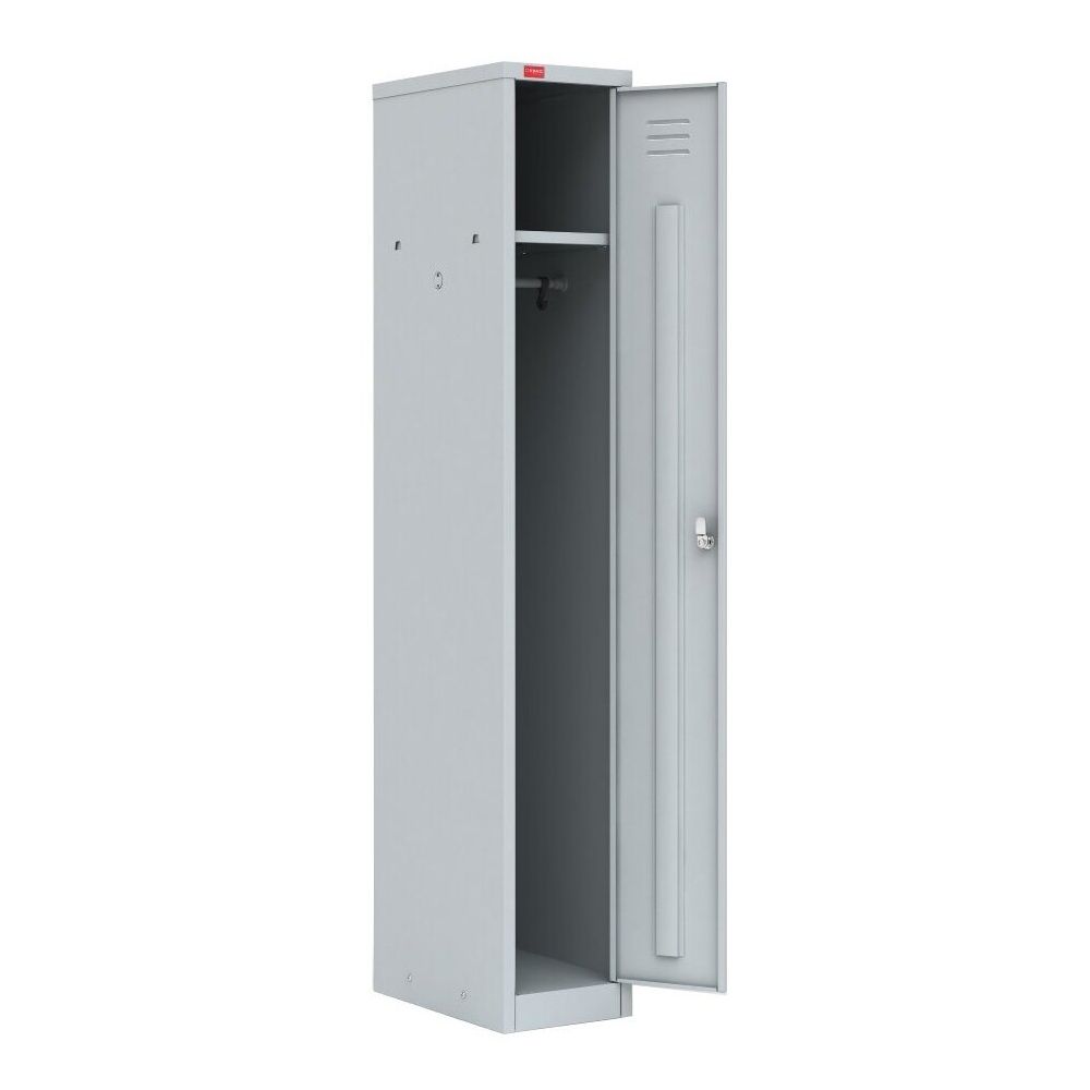 ПАКС металл ШPМ-11/400 представляет собой металлический шкаф для хранения одежды и личных вещей. Модель отлично подходит для оснащения офисов, складов, производств. Шкаф имеет односекционную конструкцию, внутри установлена перекладина для вешалок, полка для головных уборов и два крючка. Дверца усилена ребрами жесткости. Корпус выполнен из листовой стали с полимерным покрытием французской марки Bihon.