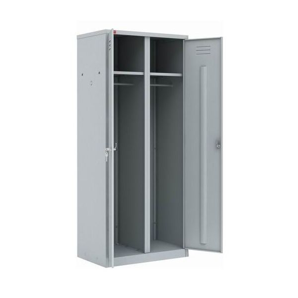 ПАКС металл ШРМ-АК/800 представляет собой двухсекционный шкаф для хранения одежды и личных вещей персонала. В конструкции предусмотрено два отсека, в каждом из которых находится полка для головных уборов, перекладина и 2 крючка. Шкаф закрывается на двухстворчатую дверь, каждое полотно оснащено ключевым замком. Корпус выполнен из листовой стали с полимерным покрытием цвета RAL7035.