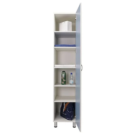 Шкаф для палат МF LH-1 1940.1 является незаменимым элементом оборудования больниц, родильных домов и лечебных стационаров. Он предназначен для хранения рабочей и личной одежды, а также других важных вещей. Каркас изготовлен из ЛДСП толщиной 16 мм с качественной кромкой 0,4 мм, что обеспечивает высокую прочность и долговечность. Удобные металлические ручки и дверь с углом открывания 110 градусов делают использование шкафа максимально комфортным. С пятью полками в этом шкафу легко будет организовать практичное и рациональное пространство.