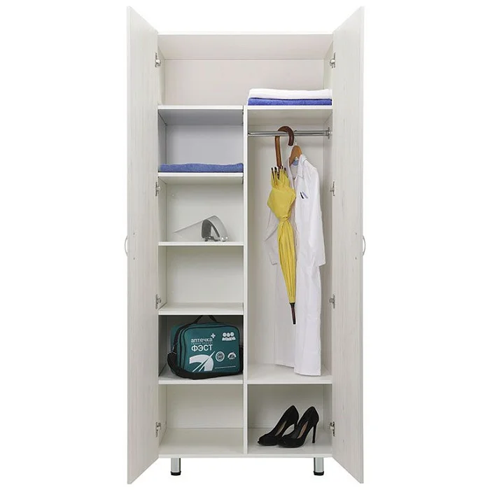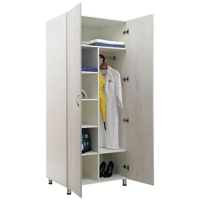 Шкаф для палат MF LH-2 1980 в цвете "белое дерево" - это отличное решение для хранения рабочей и личной одежды в медицинских учреждениях. Выполнен из прочного ЛДСП. Фасады шкафа имеют уникальную лазерную кромку толщиной 2 мм с полимерным слоем, что придает продукту эстетическую привлекательность. Эргономичные металлические ручки и двери с углом открывания 110 градусов обеспечивают удобство использования. Шкаф оснащен съемными и несъемными полками, вертикальной перегородкой и хромированной перекладиной для вешалок для организации пространства по Вашему усмотрению. Компактный и функциональный, этот шкаф будет идеальным приобретением для Вашего медицинского учреждения.